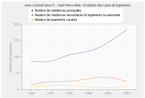 - Nombre de résidences principales de Saint-Pierre-Bois en 2007 : 275
