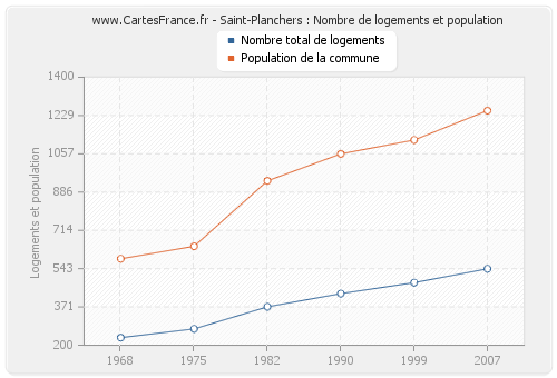 Historique du nombre de logements de Saint-Planchers de 1968 à 2007 :