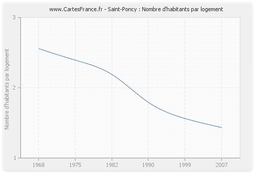 - Nombre d'habitants moyen par logement de Saint-Poncy en 2007 : 1,43