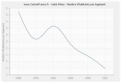 - Nombre d'habitants moyen par logement de Saint-Rémy en 2007 : 2,10