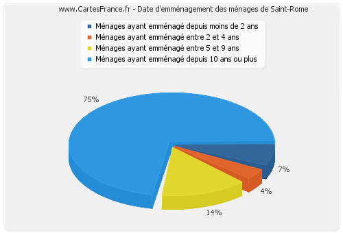 - Nombre de ménages de Saint-Rome ayant emménagé depuis 10 ans ou plus : 21