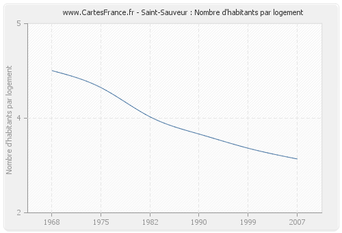 - Nombre d'habitants moyen par logement de Saint-Sauveur en 2007 : 2,85