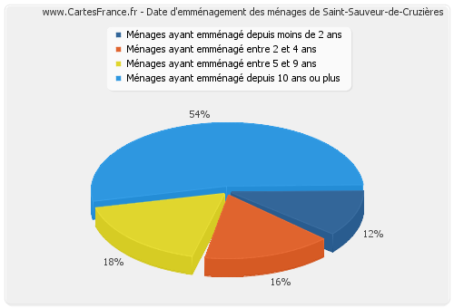 - Nombre de ménages de Saint-Sauveur-de-Cruzières ayant emménagé depuis 10 ans ou plus : 121