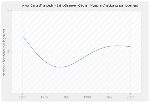- Nombre d'habitants moyen par logement de Saint-Seine-en-Bâche en 2007 : 2,12