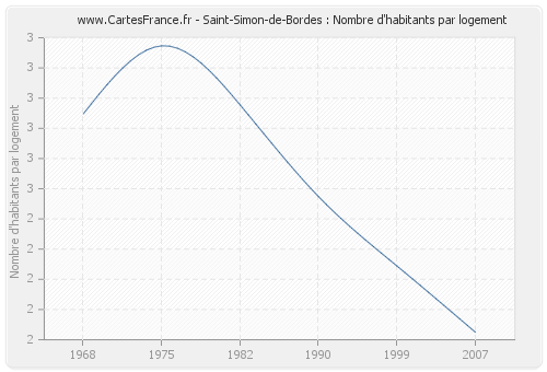- Nombre d'habitants moyen par logement de Saint-Simon-de-Bordes en 2007 : 2,02
