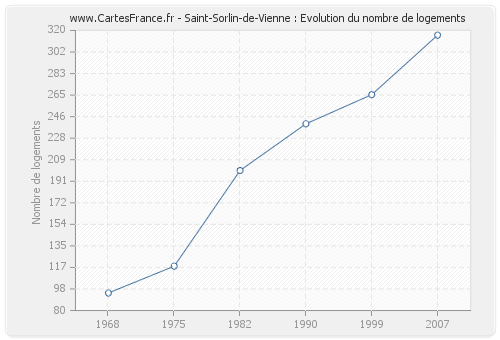Historique du nombre de logements de Saint-Sorlin-de-Vienne de 1968 à 2007 :