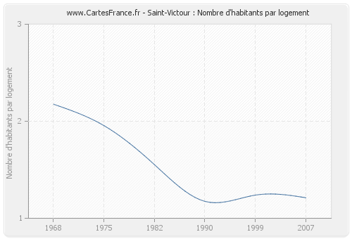 - Nombre d'habitants moyen par logement de Saint-Victour en 2007 : 1,21