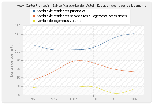 - Nombre de résidences principales de Sainte-Marguerite-de-l'Autel en 2007 : 142