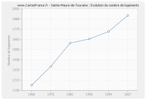 Le nombre de logements de Sainte-Maure-de-Touraine était de 1 927 en 2007, 1 750 en 1999, 1 668 en 1990, 1 622 en 1982, 1 365 en 1975 et 1 158 en 1968.