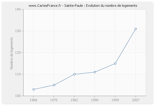 Historique du nombre de logements de Sainte-Paule de 1968 à 2007 :