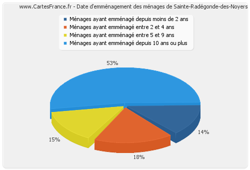 - Nombre de ménages de Sainte-Radégonde-des-Noyers ayant emménagé entre 5 et 9 ans : 51