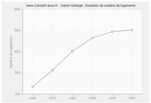 Historique du nombre de logements de Sainte-Solange de 1968 à 2007 :