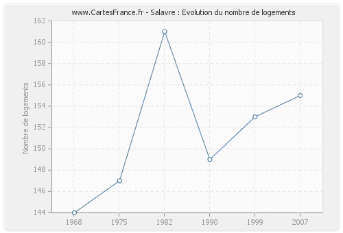 Historique du nombre de logements de Salavre de 1968 à 2007 :