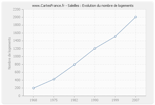 Historique du nombre de logements de Saleilles de 1968 à 2007 :