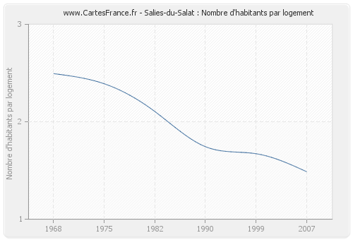 - Nombre d'habitants moyen par logement de Salies-du-Salat en 2007 : 1,49