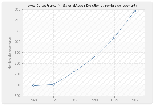 Historique du nombre de logements de Salles-d'Aude de 1968 à 2007 :