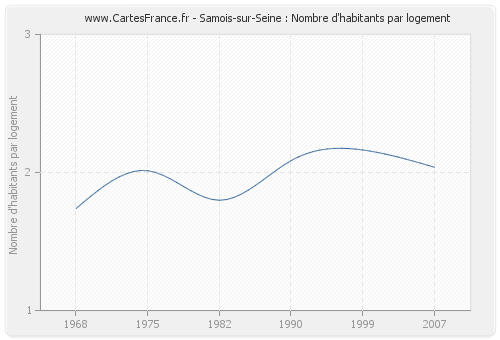 La Ville de Samois-sur-Seine avait en 2007 une moyenne de 2,04 habitants par logement.