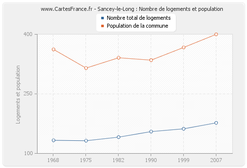 La population de Sancey-le-Long était de 400 habitants en 2007, 367 habitants en 1999, 335 habitants en 1990, 341 habitants en 1982, 315 habitants en 1975 et 362 habitants en 1968. Parallèlement, le nombre de logements de Sancey-le-Long était de 177 en 2007, 162 en 1999, 155 en 1990, 141 en 1982, 132 en 1975 et 133 en 1968.
