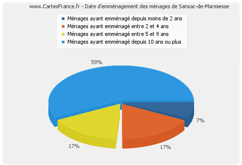 - Nombre de ménages de Sansac-de-Marmiesse ayant emménagé depuis 10 ans ou plus : 285