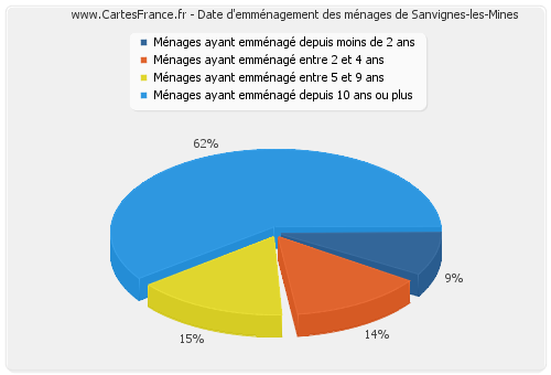 - Nombre de ménages de Sanvignes-les-Mines ayant emménagé entre 5 et 9 ans : 306
