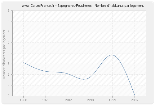 - Nombre d'habitants moyen par logement de Sapogne-et-Feuchères en 2007 : 2,21