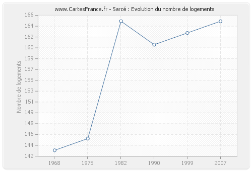 Historique du nombre de logements de Sarcé de 1968 à 2007 :
