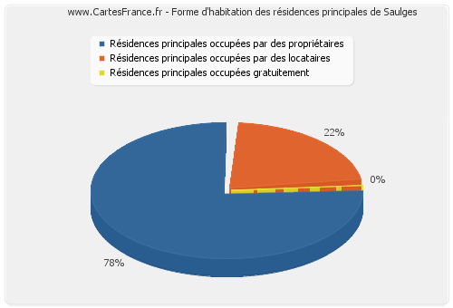 En 2007, 100 résidences principales de Saulges étaient occupées par des propriétaires.