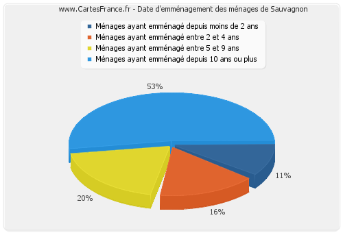 - Nombre de ménages de Sauvagnon ayant emménagé depuis 10 ans ou plus : 531