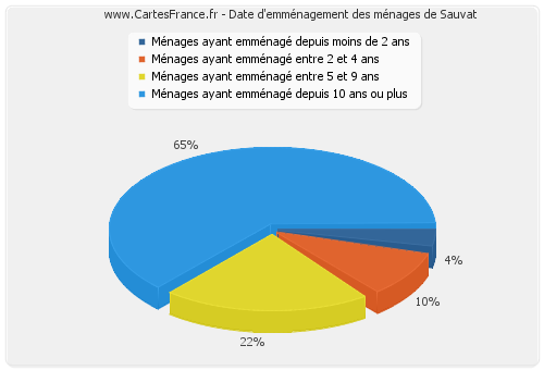 - Nombre de ménages de Sauvat ayant emménagé depuis 10 ans ou plus : 54
