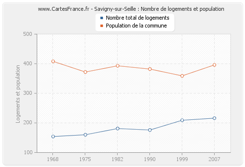 - Population de Savigny-sur-Seille en 2007 : 396 habitants