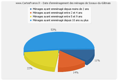- Nombre de ménages de Sceaux-du-Gâtinais ayant emménagé depuis 10 ans ou plus : 121