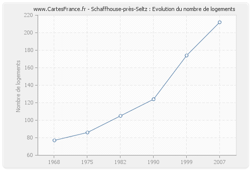Historique du nombre de logements de Schaffhouse-près-Seltz de 1968 à 2007 :