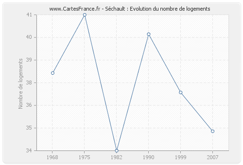Le nombre de logements de Séchault était de 35 en 2007, 37 en 1999, 40 en 1990, 34 en 1982, 41 en 1975 et 38 en 1968.