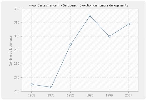 Historique du nombre de logements de Serqueux de 1968 à 2007 :
