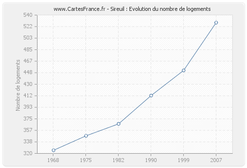 Historique du nombre de logements de Sireuil de 1968 à 2007 :
