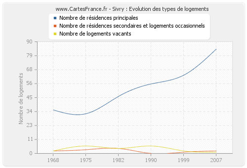 - Nombre de résidences principales de Sivry en 2007 : 84