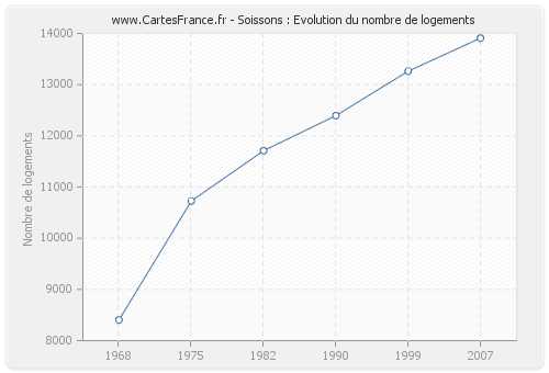 Historique du nombre de logements de Soissons de 1968 à 2007 :