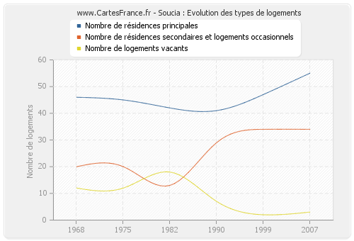 - Nombre de résidences principales de Soucia en 2007 : 55