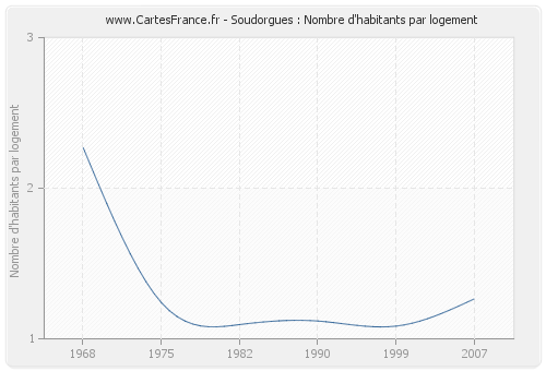 - Nombre d'habitants moyen par logement de Soudorgues en 2007 : 1,27