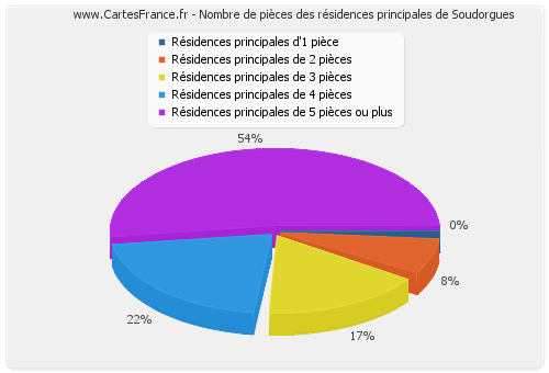 - Nombre de résidences principales de Soudorgues de cinq pièces et plus : 64