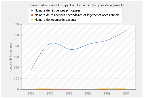 - Nombre de résidences principales de Spycker en 2007 : 546