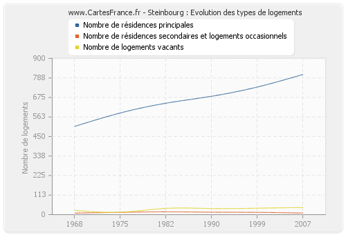 - Nombre de résidences principales de Steinbourg en 2007 : 807