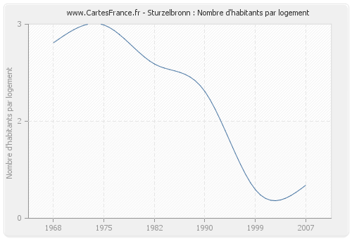 Le Village de Sturzelbronn avait en 2007 une moyenne de 0,51 habitants par logement.