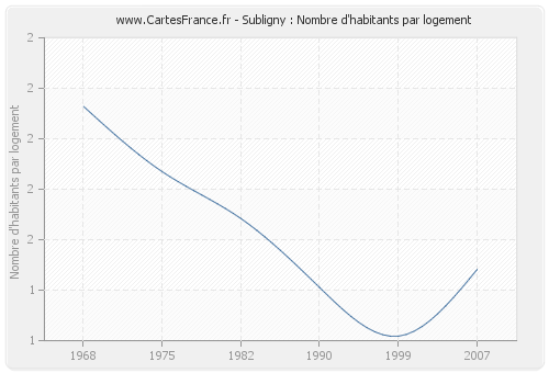 - Nombre d'habitants moyen par logement de Subligny en 1975 : 1,69