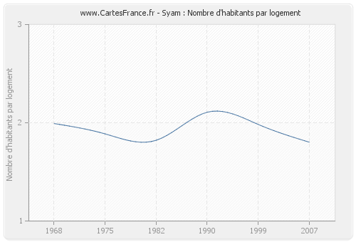 - Nombre d'habitants moyen par logement de Syam en 2007 : 1,80
