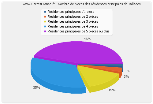 - Nombre de résidences principales de Taillades de trois pièces : 115