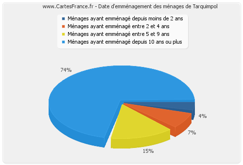 - Nombre de ménages de Tarquimpol ayant emménagé depuis 10 ans ou plus : 20