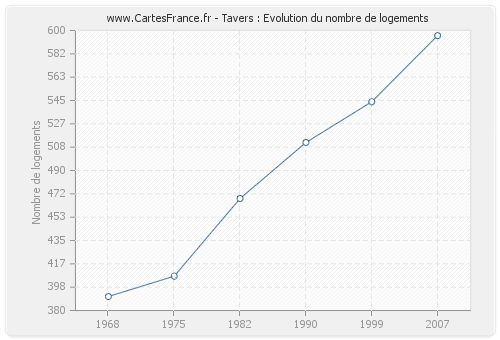 Historique du nombre de logements de Tavers de 1968 à 2007 :