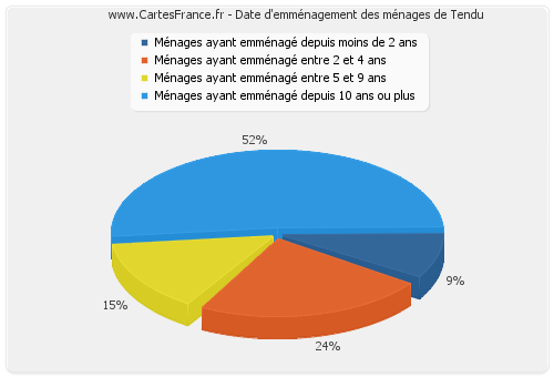 - Nombre de ménages de Tendu ayant emménagé depuis moins de 2 ans : 21