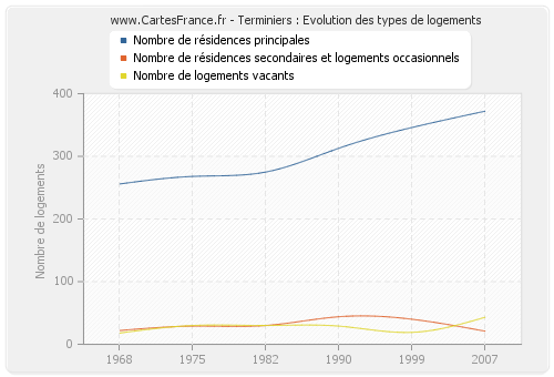 - Nombre de résidences principales de Terminiers en 2007 : 372